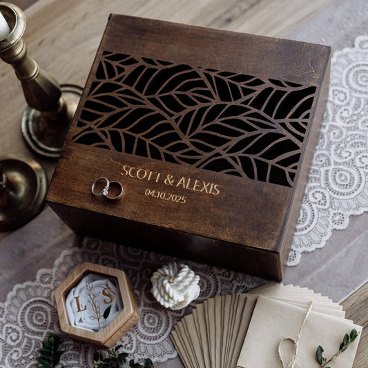 Floral Laser Cut Wooden Wedding Card Box: Personalized Keepsake ∙ AILANT