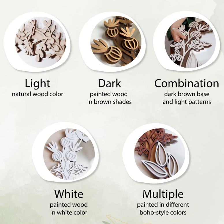 Large Floral Wood Frame Mirror - Rustic Boho Style ∙ COMBINED
