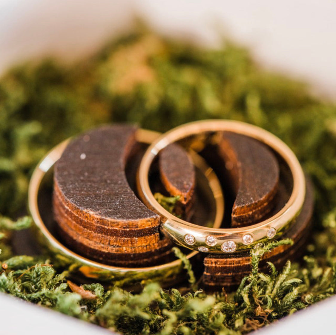 Всередині скриньки розміщений дерев'яний подіум для обручок. Він розроблений під МАЙЖЕ ВСІ МОЖЛИВІ РОЗМІРИ. Та щоб не сталося неприємного сюрпризу, і ваші колечка точно помістилися, наполегливо просимо перевірити розміри ваших обручок перед замовленням.